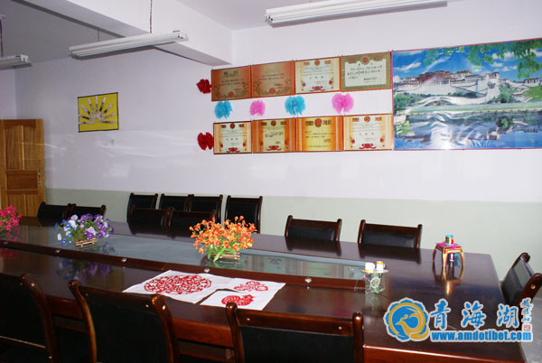 在赵园长和副园长旦正卓玛女士的陪同下记者参观了该园幼儿活动室,里面整齐摆放着很多演出用的民族服装,副园长告诉记者一般六一儿童节、园庆或者是参加县里组织的其他节目,园内有专业舞蹈老师为孩子们排练好节目去参加表演,还在不同层次和场合中拿到过很多奖项。陈列室里窗户和墙壁上都挂满了园里孩子和老师们共同制作完成的各种玩具。当记者了解园里生源详细情况时,副园长旦正卓玛说:“现入园的388名孩子中,其中151名都是来自县城干部子女或在当地长期经商者的子女,其余237名均来自本县各个村社,最远的村社有森多乡、塔秀乡,还有来自泽库县牧区的幼儿,他们为了能使孩子们受到良好的学前教育,在本县城租房花费人力物力财力送孩子来这里上学,像有的家庭确实缺乏人力,就由70多岁的老人负责接送照顾孩子,为了孩子的一切,真是可怜天下父母心,苦了老年人啊!但是,每当从老人们接送孩子时脸上流露出的表情中我们能深刻感受到他们的喜悦和无法言表的满足。”