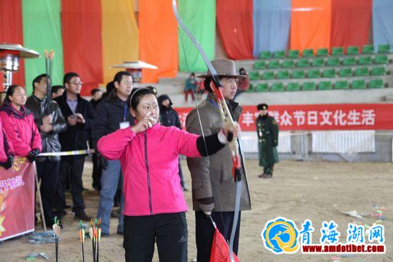2月13日,2014年春节“赛尔钦杯”民间传统射箭大赛女子射箭部分在共和县民族体育综合馆落下帷幕。