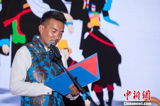 7月20日,朗诵者旦增益噶在颁奖暨吟诵活动上朗诵萨娜吉作品《琼结:绣阁里的闺女》