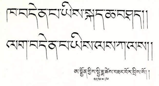 阿宁·扎西东主(藏族)藏文书法,意为:说实话,做实事。