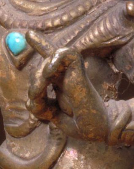 期克印: 以中指与拇指相抵,竖食指,此印是密宗的降魔印。
