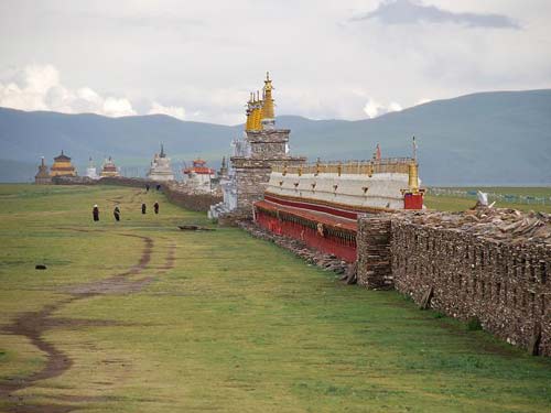 到过藏区的旅行者都会为那一座座神秘的嘛呢堆所吸引。在石渠,那一座座的嘛呢堆被垒成了城墙,垒成了城堡,横卧在美丽而辽阔的扎溪卡草原之上。一座嘛呢石堆砌的城墙在雅砻江第一湾附近,绵延起伏。这座被载入吉尼斯世界纪录的嘛呢墙是藏传佛教信徒们的圣地,也是见证青年男女坚贞爱情的吉祥之地。