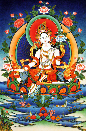 6、长寿度母 (Tara-Who Bestows Longevity & Protects Against Untimely Death) 身白色,左手持莲花,花上有满盛甘露之长寿宝瓶。
