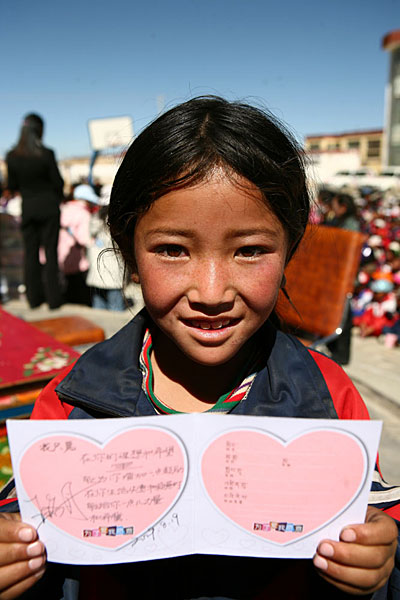 王珞丹的"爱心卡"送给了7岁的格桑卓玛